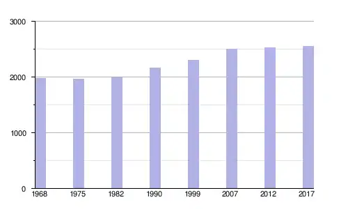 L'évolution démographique ci-dessous concerne le périmètre de l'unité urbaine défini en 2010.