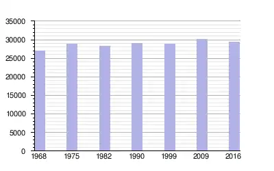 Le tableau ci-dessous présente l'évolution démographique de l'unité urbaine de Saintes dans ses nouvelles limites de 2010 sur une période allant de 1968 à 2009[3].