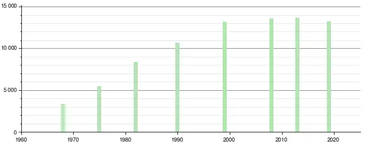 En 2021, elle compte 13 271 habitants et sa densité de population s'élève à 598 hab/km2.