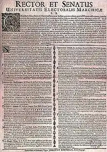 Johann Tetzel reçoit sa thèse en 1518 de la Viadrina. Elle traitait de 106 antithèses contre les 95 thèses de Luther. En 1668, Matthäus Gottfried Purmann (de) a réalisé la première transfusion de sang sur le sol allemand d'un agneau à l'homme avec succès.