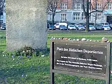 L’université occupe l'ancien quartier juif, celui de Grindel dans l’arrondissement d'Eimsbüttel. Le long du campus de l’université se dressait jusqu'en 1938 la synagogue de Bornplatz, détruite pendant la Nuit de Cristal. Pour le cinquantenaire de la Nuit de Cristal, en 1988, une voûte en granit de même taille que celle de l'ancienne synagogue a été posée à l'emplacement de l'ancien temple de la Bornplatz. La place, dessinée par Margit Kahl et Bernhard Hirche a été baptisée du nom du dernier rabbin de Hambourg, Joseph Carlebach, déporté avec sa communauté en 1941 et exécuté l'année suivante.