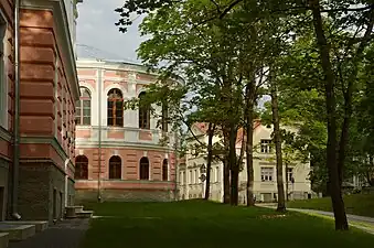 En 1886-1888, un spacieux bâtiment en pierre de deux étages de style néo-Renaissance a été construit avec un corps rectangulaire de laboratoires et de salles de travail et une rotonde séparée, qui abritait deux auditoriums avec des rangées de bancs s'élevant comme un amphithéâtre et une salle d'autopsie. Un petit couloir reliait les deux parties du bâtiment. En 1897, les côtés du couloir ont été construits selon le projet de Reinhold Guleke, et ainsi le bâtiment est devenu plus compact. Reinhold Guleke a géré les activités de construction de l'université pendant 25 ans. Il a également conçu le premier dortoir de l'université a l’adresse Liivi 4 (archives historiques estoniennes), des ajouts à la clinique des yeux et des femmes, les bâtiments des congrès des sociétés estoniennes et livoniennes, etc.