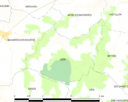 Les communes les plus proches[Note 1] sont[4] : Argelès-Bagnères (1,3 km), Bettes (1,4 km), Lies (1,7 km), Castillon (1,9 km), Mérilheu (2,5 km), Esconnets (2,9 km), Hauban (3,2 km), Gerde (3,4 km).