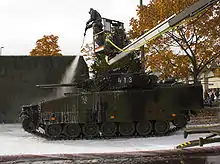 Exercice de décontamination d'un CV90 de l'armée suisse
