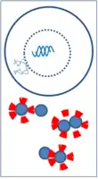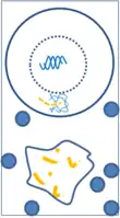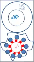 L'ARN viral utilise un transporteur, nommé vecteur, pour pénétrer à l'intérieur de la cellule : les liposomes. Petites capsules de graisse de tailles nanométriques (quelques milliardièmes de mètre), ils libèrent leur matériel génétique après avoir fusionné avec la membrane plasmique interposée entre l'intérieur de la cellule et le milieu extracellulaire ; à l'issue de quoi la cellule prend à son compte la fraction d'ARN viral et traduit la protéine correspondant à cette fraction[4].