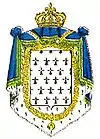 Exemple de blason posant fourrure sur fourrure (Coupé d'hermine à une hermine de vair et de vair à un verre d'hermine.) tout à fait régulier.