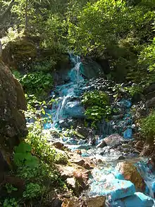 Une source d'eau turquoise est présente au lieu-dit Laveyc ou Éve-verta (en patois valdôtain « Eau verte »), à 1 290 m d'altitude environ : elle est riche en sels de cuivre.