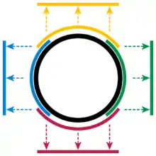 Les cartes supérieure, inférieure, gauche et droite montrent que le cercle est une variété, mais ne constituent pas le seul atlas envisageable. Les cartes n'ont pas besoin d'être des projections géométriques, et le nombre de cartes est presque arbitraire.