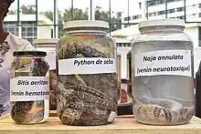 Dan : pour les Fon, Dan désigne le serpent, plus particulièrement le python, un animal sacré qu'on ne doit pas tuer. Dan a assisté à la création et soutient l'univers. Son culte est surtout répandu à Ouidah et dans sa région, où l'on trouve de nombreuses maisons aux serpents.