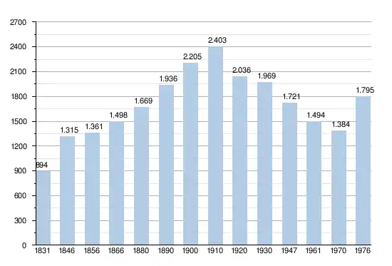 - Sources : INS, Rem. : 1831 jusqu'en 1970 = recensements, 1976 = nombre d'habitants au 31 décembre.
