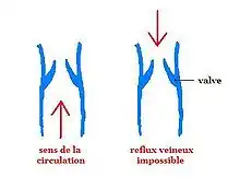 Ces valvules fragmentent la colonne de pression dans les veines et empêchent le sang de « revenir en arrière » en servant de clapet. De ce fait le sang fait toujours le même trajet mais peut l'effectuer en plusieurs fois.