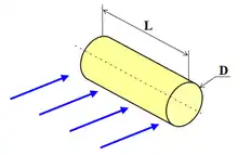 Une telle diminution n'est pas surprenante en Mécanique des fluides[réf. nécessaire] puisque le des corps suscitant un écoulement 3D est toujours beaucoup plus faible que le des corps suscitant un écoulement 2D, ceci parce qu'un corps suscitant un écoulement 3D offre toujours plus de voies à son contournement par le fluide qu'un corps suscitant un écoulement 2D[n 2] : le d'un cylindre court est donc forcément plus faible que celui du cylindre infini[réf. nécessaire].