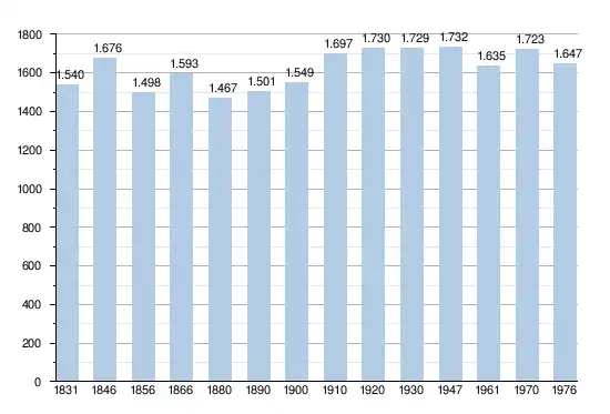 - Sources : INS, Rem. : 1831 jusqu'en 1970 = recensements, 1976 = nombre d'habitants au 31 décembre[3].