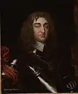 Portraits de Charles II d'Angleterre et George Monck. Le souverain déchu et le général victorieux se réconcilient sous l'égide d'Athos et de d'Artagnan, artisans français de la Restauration Stuart. | ||