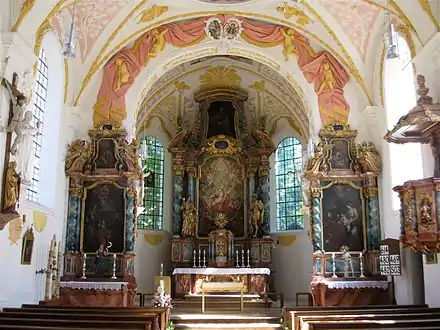 Le maître-autel de Franz Fröhlich, daté de 1712, porte au centre une peinture de sainte Marguerite, et à ses côtés des statues de l'apôtre Jean et de saint Georges. Les deux autels latéraux montrent respectivement la sainte Famille, et l'Adoration des mages.