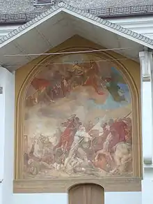 Sur la paroi extérieure Nord, sous un large auvent, est apposé une grande fresque de Wilhelm Lindenschmit l'Ancien (de) de l'année 1830, qui représente la bataille des paysans de Sendling 1705. La fresque a également été restaurée en 2003-2004.
