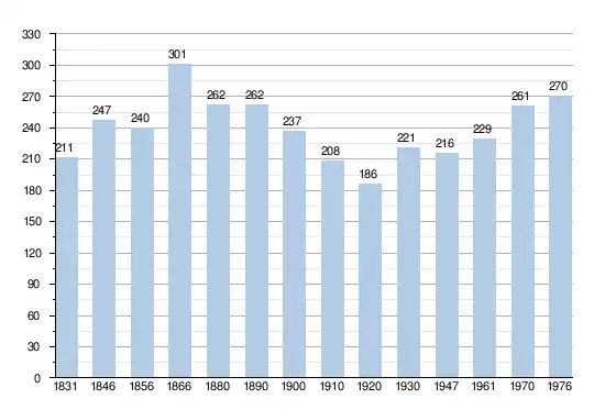 - Sources:INS, Rem:1831 jusqu'en 1970=recensements, 1976= nombre d'habitants au 31 décembre