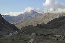 Le massif de la Meije vu du jardin botanique alpin du Lautaret, situé au col du Lautaret.