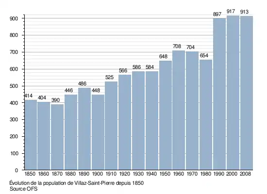Selon l'Office fédéral de la statistique, Villaz-Saint-Pierre compte 1 305 habitants en 2022[3]. Sa densité de population atteint 233 hab./km2.