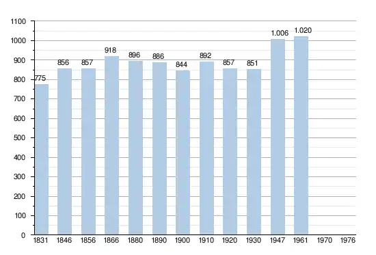 • Sources : INS, Rem. : 1831 jusqu'en 1970 = recensements, 1976 = nombre d'habitants au 31 décembre.