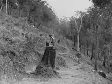 Ouvriers construisant une route vers Mount Nebo (Queensland), le