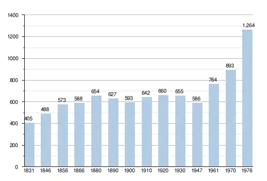 - Sources : INS, Rem. : 1831 jusqu'en 1970 = recensements, 1976 = nombre d'habitants au 31 décembre.