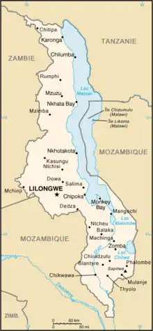 - (de) Cet article est partiellement ou en totalité issu de l’article de Wikipédia en allemand intitulé « Liste der Städte in Malawi » (voir la liste des auteurs).