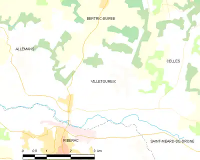 Villetoureix est une commune rurale, car elle fait partie des communes peu ou très peu denses, au sens de la grille communale de densité de l'Insee[Note 3],[29],[30],[31]. Elle appartient à l'unité urbaine de Ribérac, une agglomération intra-départementale regroupant 2 communes[32] et 4 767 habitants en 2017, dont elle est une commune de la banlieue[33],[34].