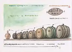 Le vinaigre balsamique traditionnel résulte d'une cuisson de moût de raisin vendangé tardivement, qui est porté à ébullition en chaudron ouvert jusqu'à réduction et épaississement d'environ 60 %. Le moût ainsi traité est longuement décanté puis est élevé en fût de chêne rouvre dans une acetaie jusqu'à sa piqûre acétique. Il est ensuite maturé dans un chai aéré où il continue de se concentrer par l'évaporation naturelle de la part des anges, puis la moitié du fût est reversée dans un autre plus petit (en principe du merisier), le fût originel étant complété d'un nouveau moût cuit avec les mères de vinaigre précédents (madre dell'aceto), et ainsi de suite durant une très longue période, à l'instar de la solera. Ce mode d'élevage se poursuit dans des fûts de plus en plus petits et dont l'essence de bois diffère : mûrier, châtaignier, genévrier, frêne...