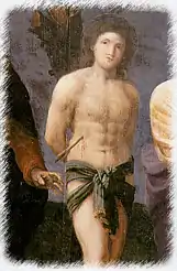 - Martyre de saint Sébastien, retable, autel de la chapelle de la famille Fioravanti, église santo Stefano, Bologne[1]