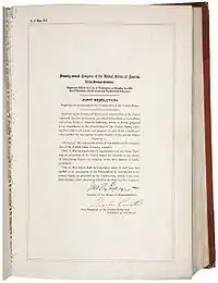 Article 3. Le présent article sera inopérant, s'il n'est ratifié comme amendement à la Constitution par les divers États assemblés en convention ainsi qu'il est prévu dans la Constitution, dans les sept années qui suivront la date de sa soumission aux États par le Congrès. »