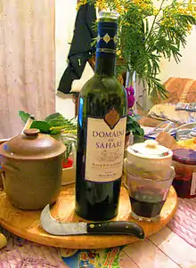 Pour la communauté juive marocaine, la production de vin perdura jusqu'au XXe siècle . La vigne était menée en hautain dans les jardins[4]. Il a cependant été signalé qu'à la fin du protectorat la qualité de ce vin casher laissait beaucoup à désirer : « Le vin rouge cacher est abominable, en particulier le vin Dahlia fabriqué par le cousin Salomon Amar. Il n'y a aucune production de vin cacher valable[8]. »