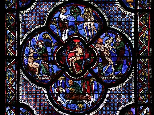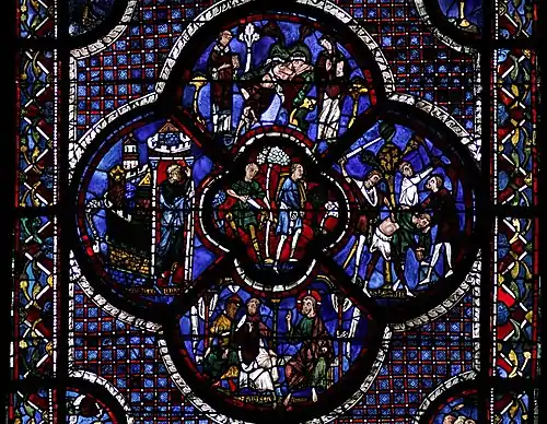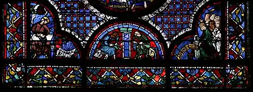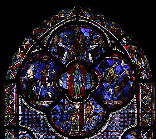 La verrière de Chartres marque une différence avec celles des cathédrales de Canterbury, Sens et Bourges[22] :