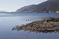 Sablonneuse et graveleuse, elle s'étend sur environ 25 m de long pour une largeur approximative de 15 m. Lorsque le niveau d'eau du lac augmente, l'île est partiellement inondé. L'île abrite de nombreux oiseaux reproducteurs : oies cendrées, canards colverts et laridaes y ont trouvé refuge (d'où le nom de l'île).