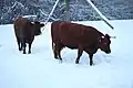 La vache mesure 130 cm pour 500 kg et le taureau 140 cm pour 600 kg.