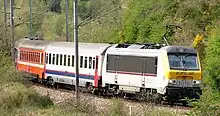 SNCF 100 100 1re A9u gris et blanc Corail 160 km/h huit voitures orange pour le trafic avec le Benelux