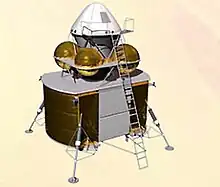 - un vaisseau équipé d'un étage de descente pour atteindre le sol martien, qui sert d'habitat à l'équipage sur Mars ;