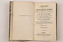 - On trouve pourtant Voltaire antijuif, par Henri Labroue, agrégé d'histoire et docteur ès lettres, Éditions Les Documents contemporains, Paris, 1942.