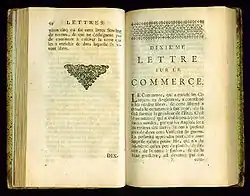 1734 est l’année de la publication clandestine des Lettres philosophiques, le « manifeste des Lumières »[31], grand reportage intellectuel et polémique sur la modernité anglaise, publié dans toute l’Europe à 20 000 exemplaires, selon l’estimation de René Pomeau[32], chiffre particulièrement élevé à l’époque. L’éloge de la "liberté et de la tolérance anglaises" est perçu à Paris comme une attaque contre le gouvernement et la religion. Le livre est condamné par le Parlement à majorité janséniste et brulé au bas du grand escalier du Palais. Une lettre de cachet est alors lancée contre Voltaire, et Émilie du Châtelet lui propose de se réfugier au château de Cirey, situé en Champagne[33],[34]. Un an plus tard, après une lettre de désaveu où il « proteste de sa soumission entière à la religion de ses pères », il sera autorisé à revenir à Paris si nécessaire, mais la lettre de cachet ne sera pas révoquée.