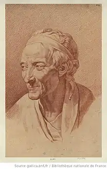 Voltaire, de son vrai nom François-Marie Arouet, né le à Paris où il est mort le , est un écrivain, notamment dramaturge et poète, un philosophe[n 1] et un encyclopédiste français, figure majeure de la philosophie des Lumières, jouissant de son vivant d'une célébrité internationale.