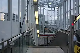la station dispose de deux hall accessibles par trois accès. Elle est équipée d'automates pour l'achat de titres de transports. Les circulations piétonnes entre les niveaux s'effectuent par des escaliers mécaniques et des ascenseurs pour les personnes à la mobilité réduite[2].