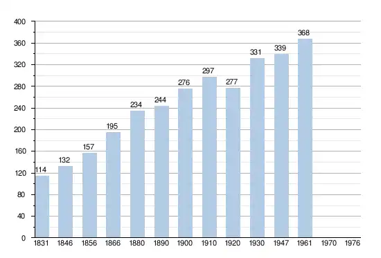 - Sources : INS, Rem. : 1831 jusqu'en 1970 = recensements, 1976 = nombre d'habitants au 31 décembre.