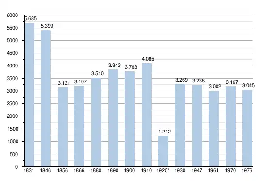 • 1920 : déclin de la population dû à la Première Guerre mondiale
