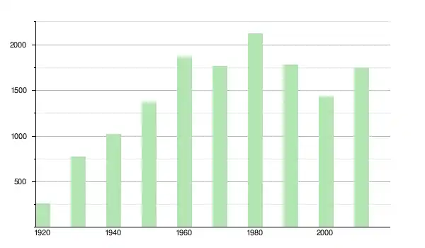 | 1970 | 1 768 | ▼ −5,2 % | |