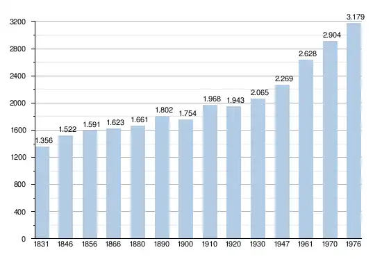 - Sources : INS, Rem. : 1831 jusqu'en 1970 = recensements, 1976 = nombre d'habitants au 31 décembre.