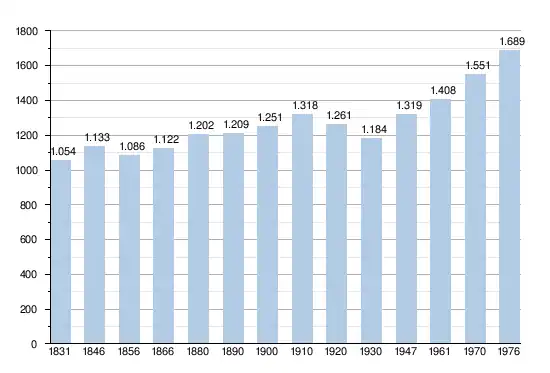 - Sources : INS, Rem. : 1831 jusqu'en 1970 = recensements, 1976 = nombre d'habitants au 31 décembre[2].