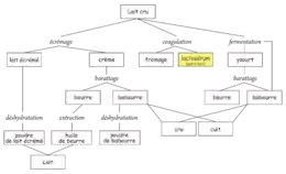 • le lactosérum acide, obtenu par coagulation du lait par acidification provoquée par le métabolisme des bactéries lactiques[2]. Elle donne un caillé cassant, ferme et perméable.