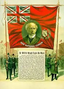 Comme Antoine-Aimé Dorion et beaucoup d'autres rouges, qui rebaptiseront leur organisation du nom de Parti libéral, Laurier décide de se rallier au Dominion du Canada[26]. Cette décision pragmatique, digne de la realpolitik, marque un tournant dans le cheminement de Laurier : il préfère la diplomatie au combat, devant le fait accompli.