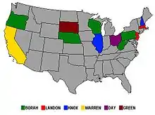 Lorsqu'il devient évident que Taft serait renommé, Roosevelt et ses partisans font éclater le parti ; l'ancien président demande à William Borah de présider la réunion d'organisation de son nouveau parti progressiste, mais l'Idahoain refuse. William ne veut pas quitter le parti républicain et ne soutient aucun des candidats à la présidence (les démocrates nomment le gouverneur du New Jersey Woodrow Wilson). Lorsque Roosevelt vient à Boise en octobre, lors d'un changement de campagne, William Borah estime qu'il doit saluer l'ancien président et s'asseoir sur la plate-forme pendant que Roosevelt parle, bien qu'il ne veuille pas le soutenir. Dans son discours, Roosevelt parle d'une longue liste de votes de délégués d'État qui lui a été volée, et après chaque vote, il se tourne vers William Borah et lui demande : « N'est-ce pas, Sénateur Borah ? », ne lui laissant pas d'autre choix que de hocher la tête[28]. On ne sait pas si William Borah a voté pour Roosevelt ou Taft, il déclare plus tard les deux à des moments différents[29]. Le principal problème dans l'Idaho est la réélection de William Borah, qui est si populaire que les mécontents du sénateur pour ne pas avoir soutenu Taft ou Roosevelt se taisent. Les habitants de l'Idaho contribuent à l'élection de Wilson, mais envoient 80 législateurs républicains sur 86 à Boise (deux des six démocrates s'étant engagés à soutenir William Borah si nécessaire), qui, le , renvoie William Borah pour un second mandat[note 4],[30].