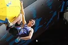 Will Bosi en demi-finale des Championnats du monde de difficulté de 2018.